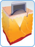 2. High-intensity ultrasound energy is aligned to target fat below the epidermal layer to destroy it.