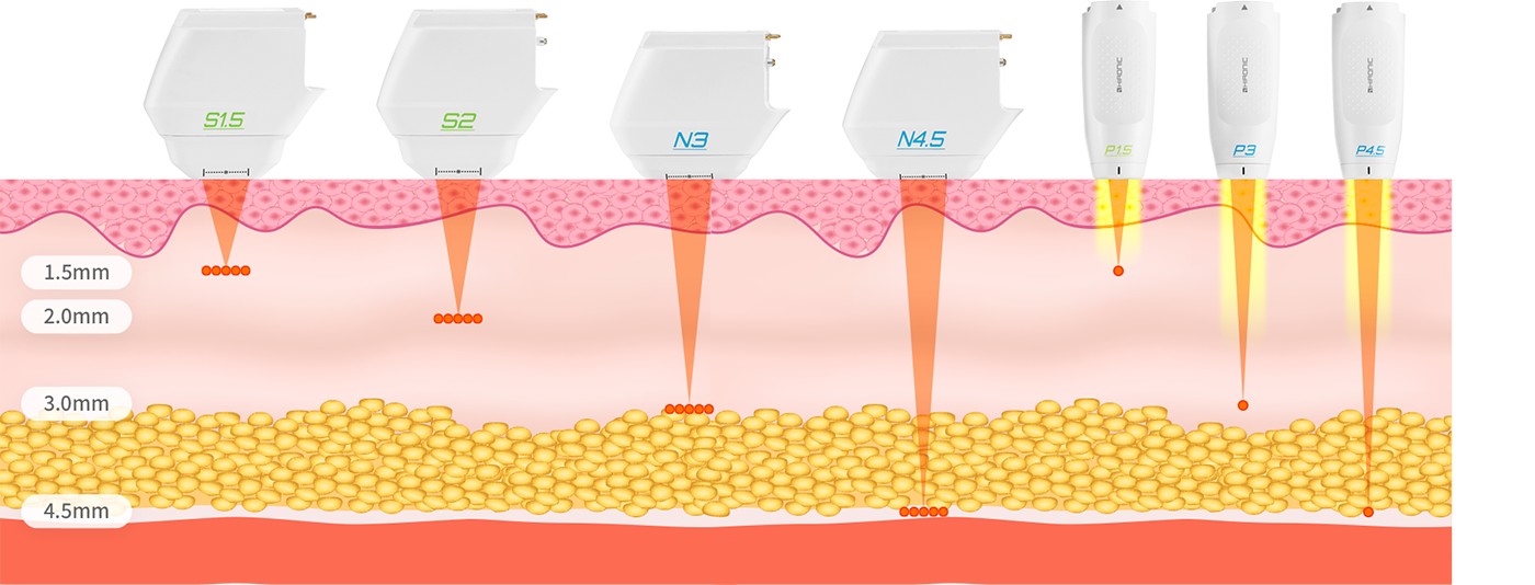 Thermal freezing points are formed in various skin layers such as the dermis layer and SMAS layer, and treatments can be tailored to suit each skin layer, taking into account the different skin thicknesses of each individual.